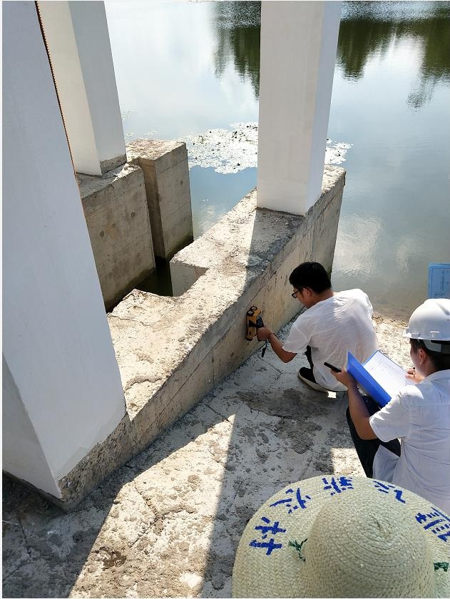巢湖市義城圩義城泵站進(jìn)水閘排架鋼筋保護(hù)層厚度、間距及分布檢測(cè)